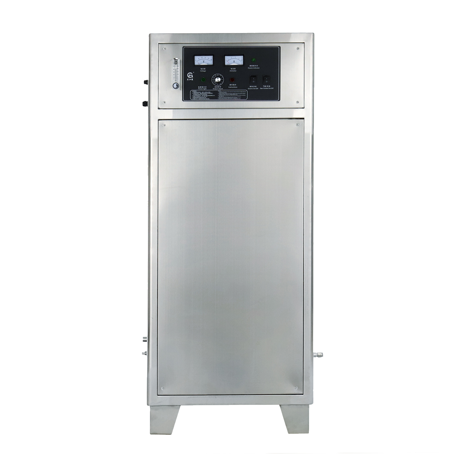 1:產(chǎn)品組成:臭氧發(fā)生器單元(80G/H)、220V/50HZ臭氧電源、、內(nèi)置無油空壓機(jī)、冷凝器、精密濾水系統(tǒng)、不銹鋼干燥裝置、不銹鋼外殼、電流表、電壓表、臭氧指示燈、電源指示燈、風(fēng)扇、臭氧濃度調(diào)節(jié)旋鈕等。